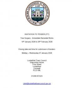 Lostwithiel Town Council hereby invites tenders for the carrying out of the service of tree surgery for immediate remedial works.From 3 Dec 2025 to 7 Jan 2026